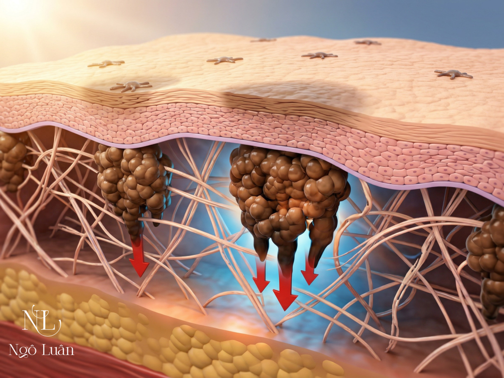 Nhiều trường hợp nám, sắc tố không chỉ ở lớp thượng bì (bề mặt) mà còn đi sâu xuống lớp trung bì — khiến việc làm mờ bằng kem bôi thông thường trở nên kém hiệu quả.