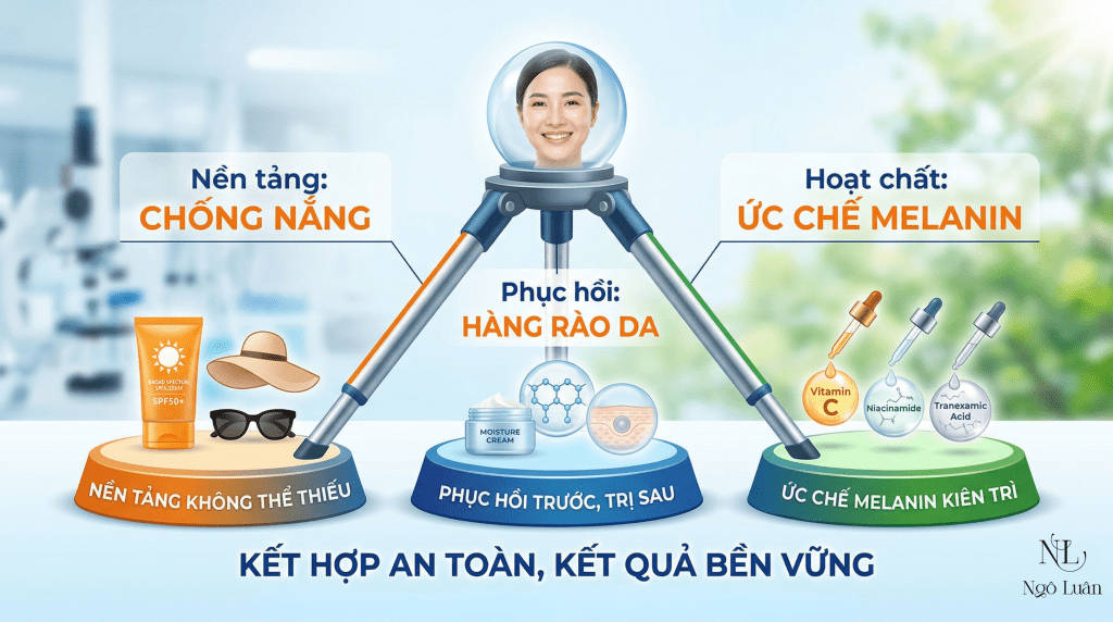 Protocol điều trị nám hiệu quả thường bao gồm: